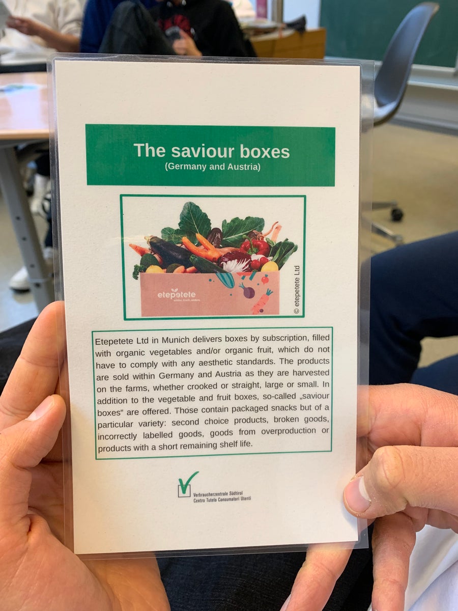 Was können wir dagegen unternehmen? Gemeinsam mit der Referentin Silke Raffeiner sind die Schülerinnen und Schüler dieser Frage auf den Grund gegangen und haben Beispiele in Südtirol kennengelernt, wo der Lebensmittelverschwendung aktiv der Kampf angesagt wird. Es gibt bei uns ein sehr gut funktionierendes Netz an Lebensmitteltafeln, welche überschüssige und gespendete Lebensmittel an bedürftige Menschen weitergeben, wie z.B. der „Der Banco Alimentare“ der Region Trentino-Südtirol oder die „Bröseljäger“, welche ganzjährig überschüssige Lebensmittel und solche, die bald ablaufen, von Produzenten und Handelseinrichtungen abholen und diese an karitative Organisationen wie die Südtiroler Vinzenzgemeinschaft, die Caritas, den Verein Volontarius weitergeben.