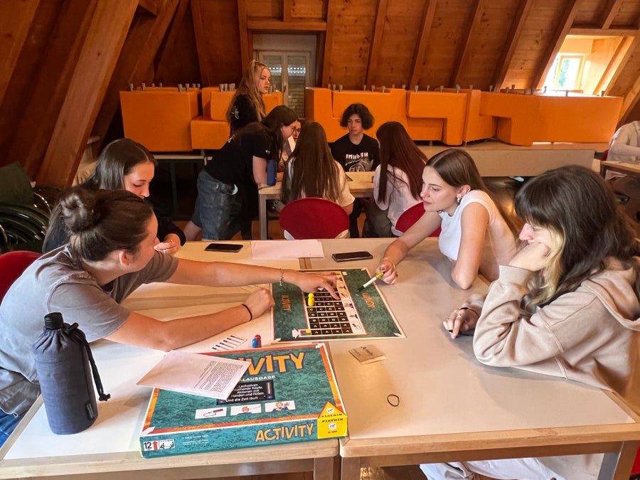 Spielen vereint. Freude und Spaß am gemeinsamen Spiel bringt Menschen zusammen. Der Zweck dieses Nachmittages bestand darin, die Interaktion zwischen Schüler/innen zu erleichtern und den Teamgeist zu fördern. Es war eine unterhaltsame Veranstaltung, auf die sich die Schüler/innen freuten und gleichzeitig Gelerntes im Fach Empfang wiederholen und festigen konnten.