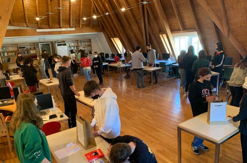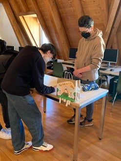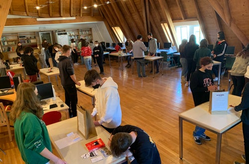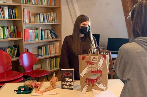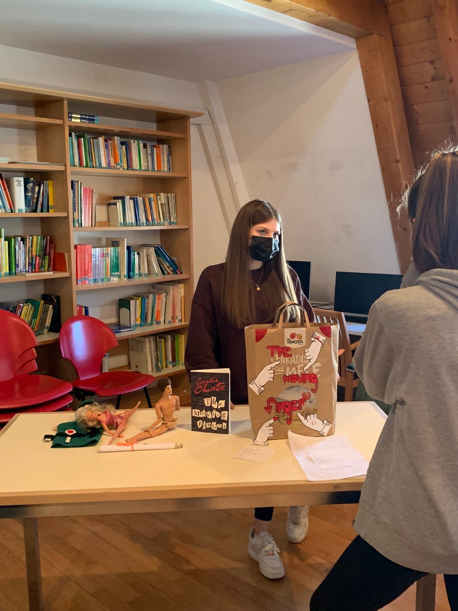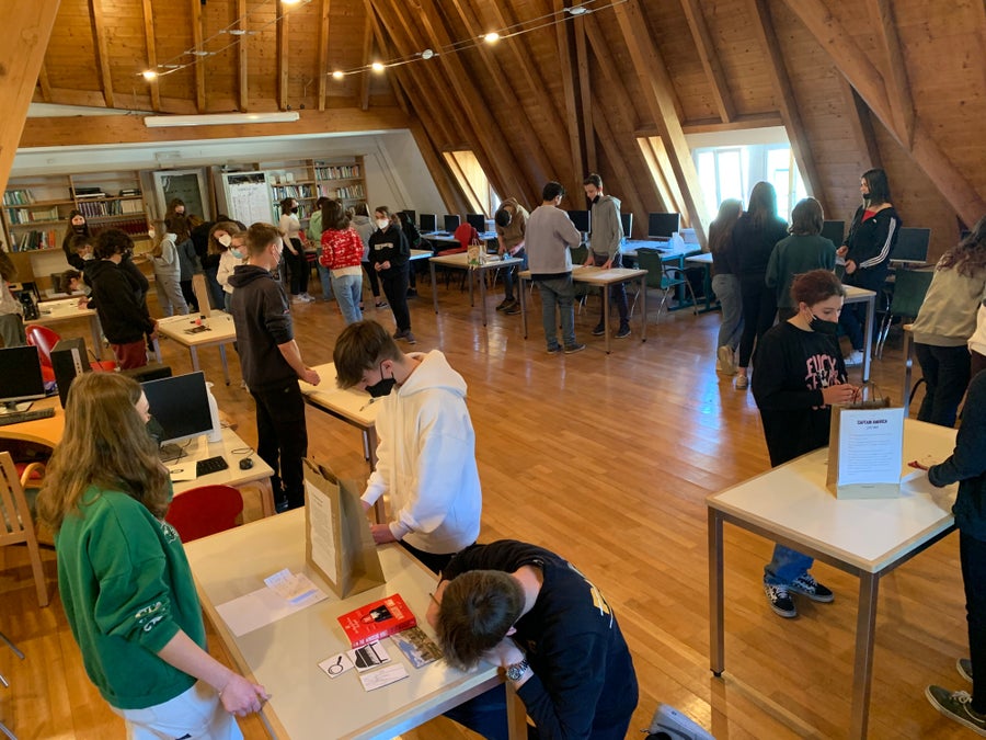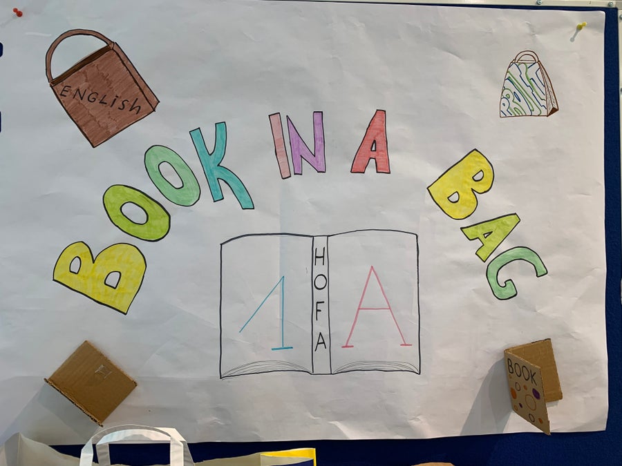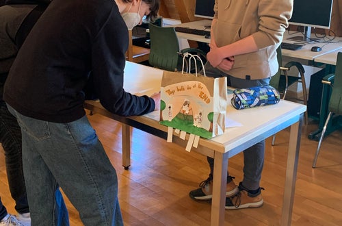 Once read the book and prepared the paper bag with a summary of the book attached at the back of it, they invited the 1 HOFA C to come to their book market in the school’s library, where the students could stroll through the market. Every student could present his/her book to students interested in their book using the special paper bag. After having listened to a few presentations, the guests could take home a book of their own choice.