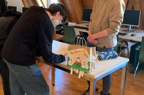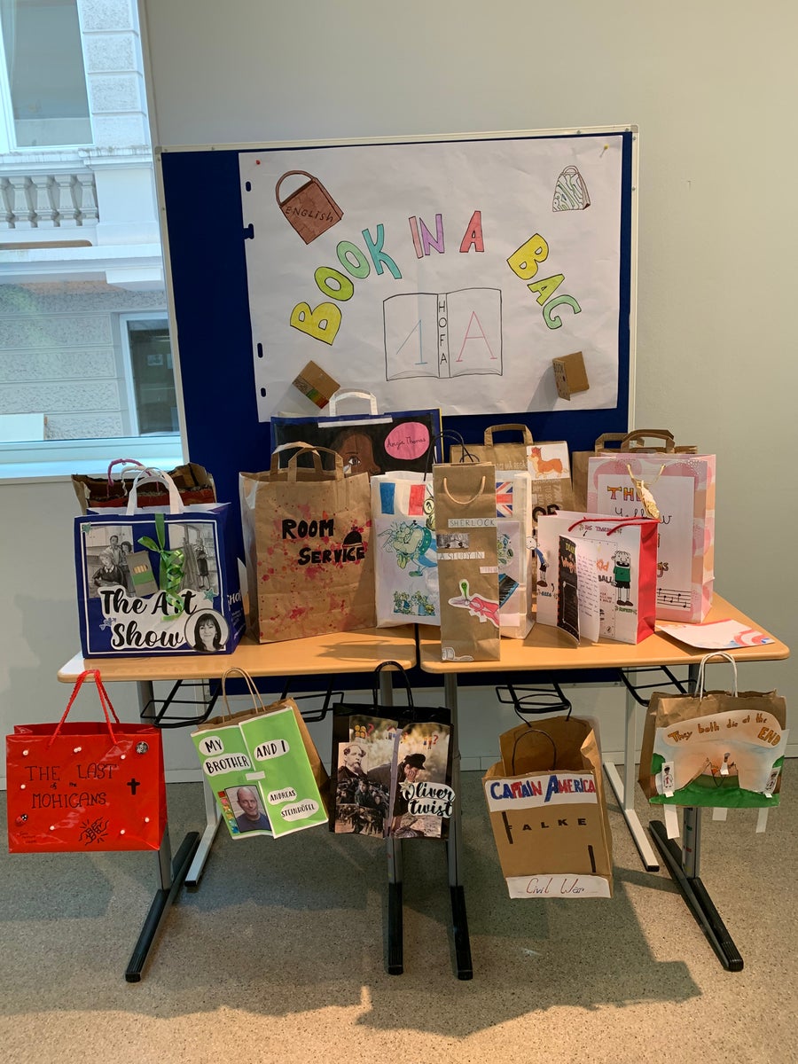 That’s what the 1 HOFA A wanted to change! They decided with their English teacher to immerse themselves in the world of books. After having chosen a book to read in the free time and sometimes in class, they had to prepare a book market where other students could forage for a title they would like to read. But how could the students awaken interest for their book? With a decorated paper bag!